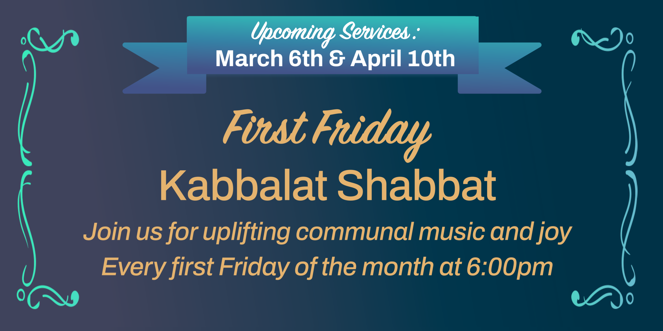 6:00pm First Fridays Kabbalat Shabbat